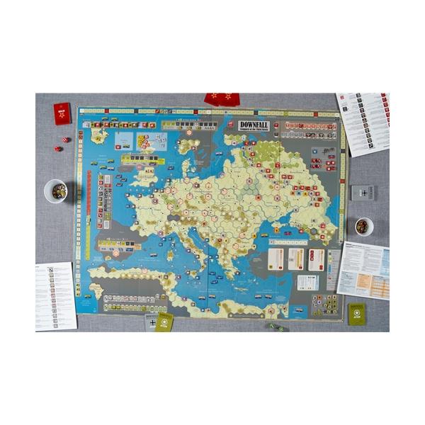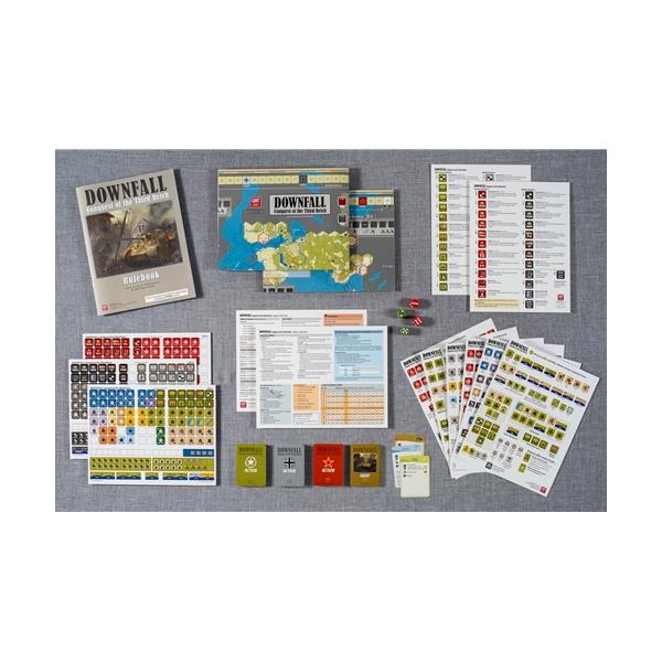 Downfall is a two-player game on the conquest of the Third Reich in World War II. One player controls the Western Allies and the other the Soviet Union in their joint effort to destroy the Axis. Though the two players share the goal of defeating the Reich, each seeks a victory that favors their dominance in post-war Europe. To this end, each player controls two factions: