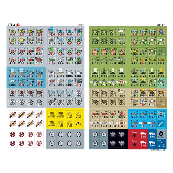 Italy '43 uses the same game system used in Salerno ’43 with some modifications and rule improvements, and it uses the exact same map and unit scale as Salerno '43 and Normandy '44.