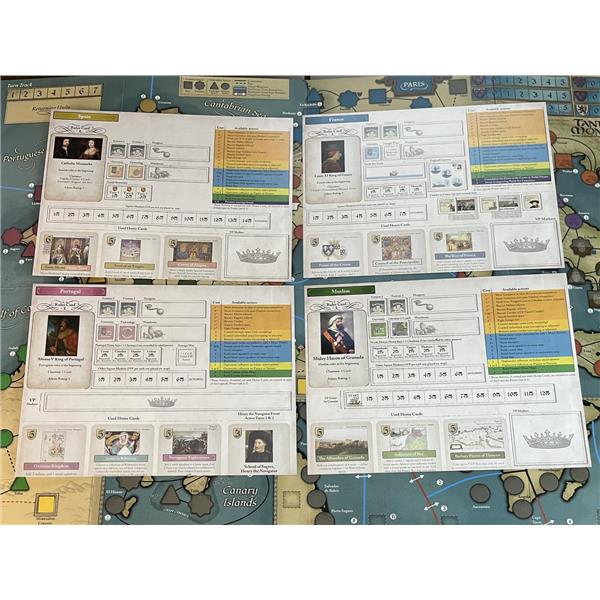 THE GAME: In Tanto Monta: The Rise of Ferdinand and Isabella, each of the four players rules one major power and another secondary power as follows: