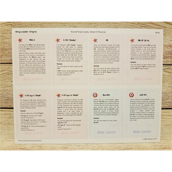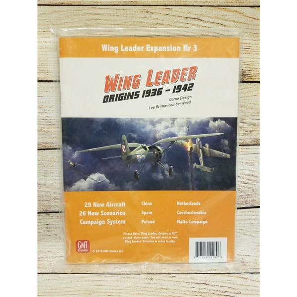 Wing Leader: Origins 1936-1942 is the third expansion for GMT's Wing Leader system. Origins dives into the thrilling battles of the inter-war and early-war period. This expansion matches biplanes against fast monoplanes in combat over Spain, China, and Poland. Nationalist CR.32s face off against 'Red' I-15s over Madrid. Soviet volunteers fly 'Chaikas' against Japanese 'Claudes' above China. Bf 109s dive into streams of British Wellingtons, Halifaxes, and Manchesters while defending battleships in Brest.