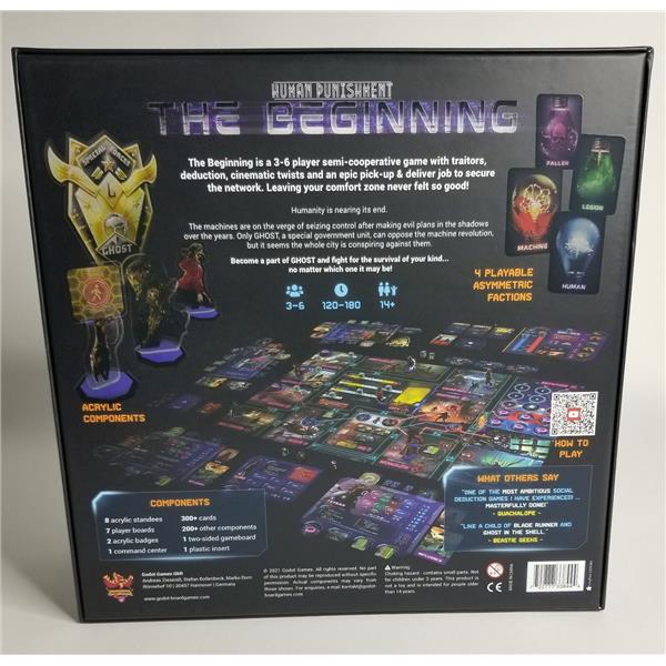 3-6 players try to avoid the secret Machine revolution, but Machine spies are everywhere and they try to corrupt the Human players. There are also Outlaws, Fallen and Legion just as in Human Punishment and every faction works for their own goals.