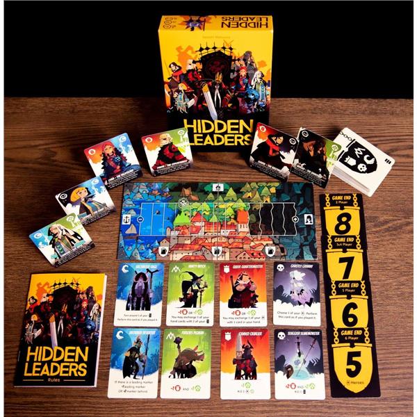 Hidden Leaders is a quick, light strategy card game with direct player interaction. It combines tableau building and deduction elements with its unique winning mechanism. This is a game of great tension with no-down time, that’s fast to learn. Its distinctive artwork and character names will make you smile.