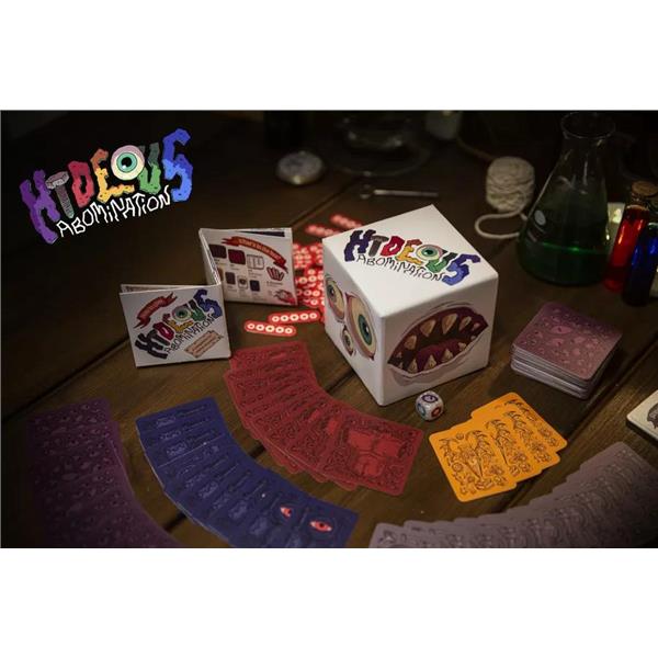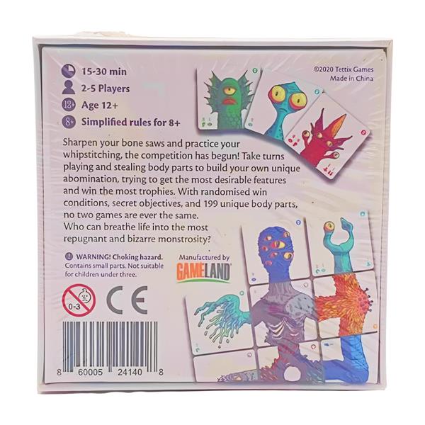 Sharpen your bone saws and practice your whipstitching, the competition has begun! Take turns laying body part tiles to build your own unique abomination, trying to get the most desirable features and win the most trophies. With randomized win conditions and over 200 unique hand-inked body parts, no two games are ever the same. Who can breathe life into the most repugnant and bizarre monstrosity?