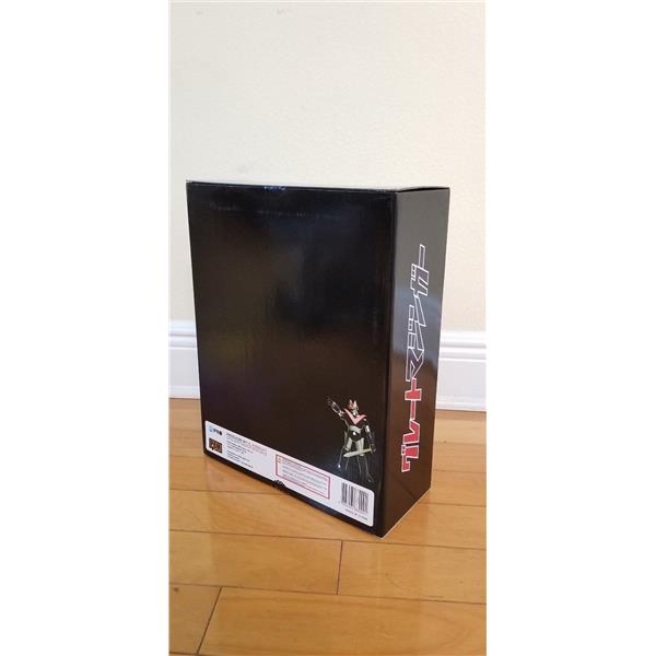 This is a 12 inch tall pvc action figure with lots of articulation. It comes in a window box.