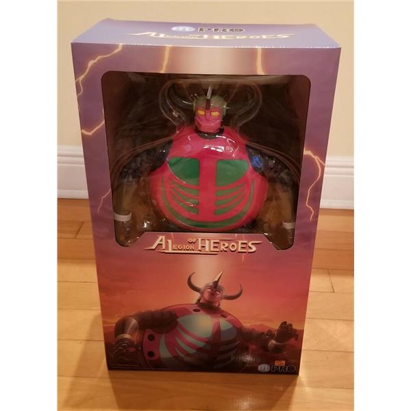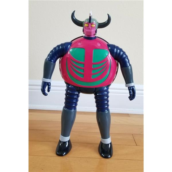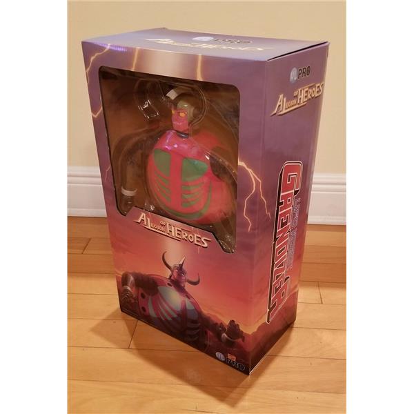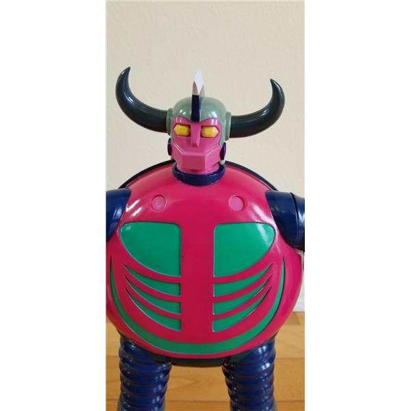 This is the second character to be released in the 40cm vinyl figure line after Grendizer Giga, GAME GAME from the popular manga series by Go Nagai UFO ROBOT GRENDIZER. It is the main villain of the episode 2, a mecha space monster sent by the Vegan army on Earth to defeat Duke Fleed and his mighty robot. Using his ultra-flexible arms and legs, Game Game could force the Grendizer Spacer to crash and Grendizer to eject, before engaging him on the ground for a fierce battle.