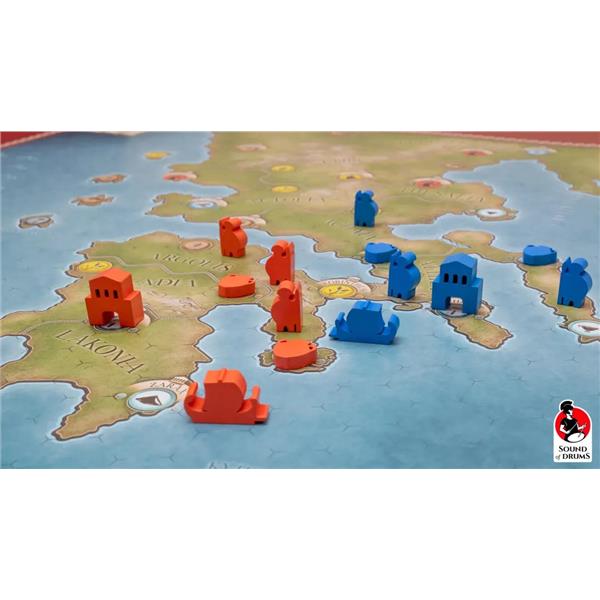 You will move your wooden playing pieces across the beautifully illustrated map from the center of the Hellenistic world to the shores of Persia in the east and the sandy beaches of Sicily in the west to expand your trade network and increase your trading status.