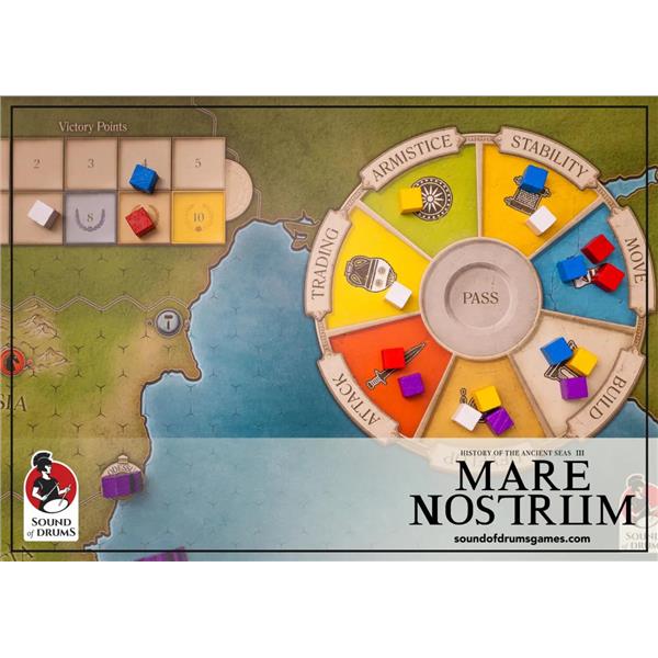 MARE NOSTRUM is a five player game. New in this chapter of the game series is that each power has unique properties that players must use wisely to achieve advantage over their opponents.