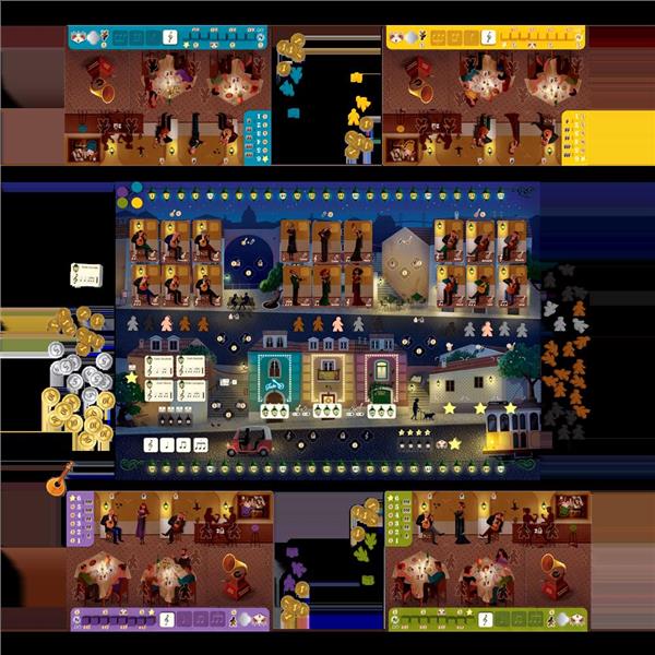 In the game House of Fado, players have to manage their restaurant, attract customers, and contract and promote fadistas and musicians, thus gaining prestige for their fado house. Managers will move their staff members to different places to perform some actions, using the same bump action as in The Gallerist.