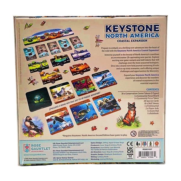 Keystone: North America (Second Edition) offers multiple ways to play, updated rules and refined style! Go head-to-head against your friends in multiplayer and see who can build the healthiest ecosystem. Or experience a narrative adventure that will take you on a journey across North America with the Field Journal. This fully illustrated book contains a solo or co-op campaign where you will solve puzzles, learn about amazing animals, and explore the different ecosystems that make up North America.