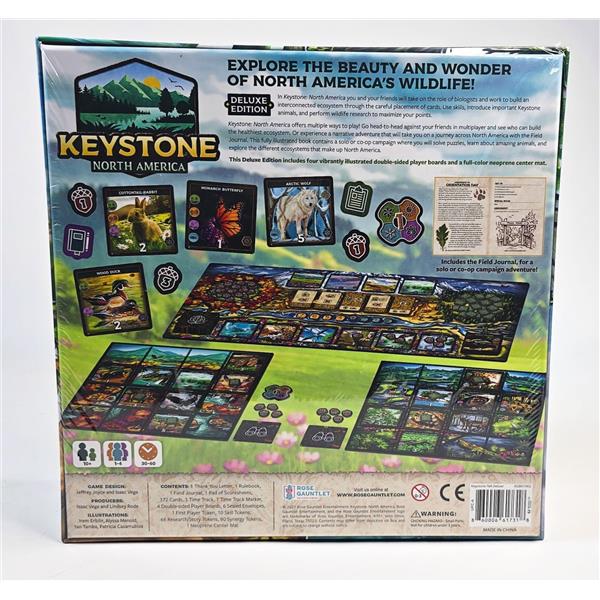 In Keystone: North America, you and your friends will take on the role of biologists and work to build an interconnected ecosystem through the careful placement of cards. Use skills, introduce important Keystone animals, and perform wildlife research to maximize your points.