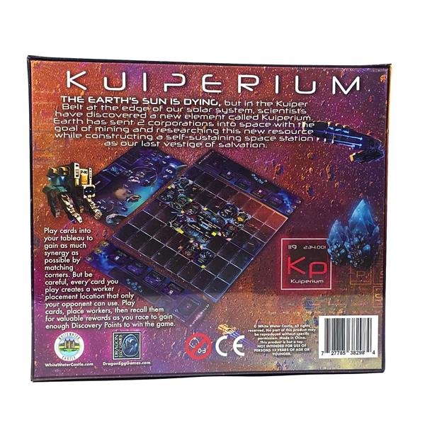 Kuiperium is a two player scifi themed game where you'll take the role of a corporation building a space station along the Kuiper asteroid belt with the goal of mining "Kuiperium". Kuiperium is a newly discovered element and is incredibly valuable. Race against your opponent to gain control of the space station, mine the most kuiperium, and ultimately launch towards new frontiers.
