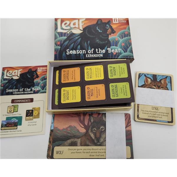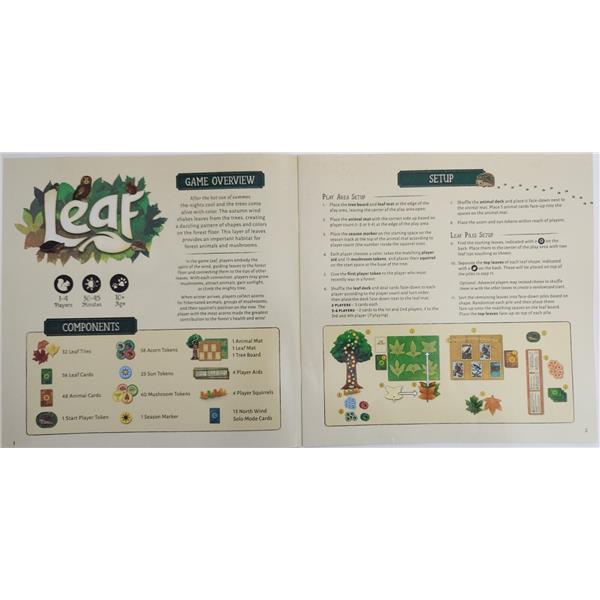 In the game Leaf, players embody the wind by guiding leaves to the forest floor and connecting them to the ones that have already fallen. Each leaf you touch will grant you actions to create a thriving forest. Attract woodland animals, grow mushrooms, lead helpful squirrels up the great tree, and gain additional leaf cards and sun tokens by strategically placing leaves. The player who contributes most to the health of the forest wins!