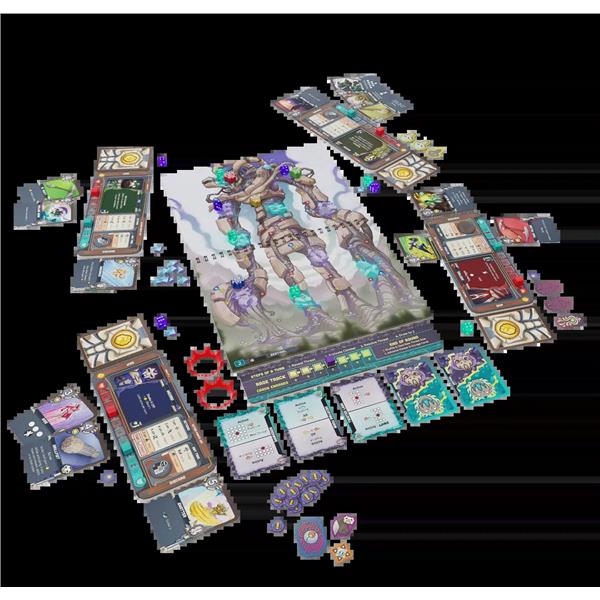 Players' characters can move around a square grid overlaid on the creature's body by spending action points — the number being determined by a card played at the start of their turn — and their remaining hand of ability cards to reach the crystals and reduce them to zero. Victory is achieved by reducing all crystals, which vary in strength, to zero.