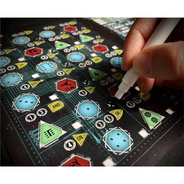 Each round players must add one of the dice to the clock module, the higher the die added, the more damage done to the NED but also the less time the player has inside its systems, creating a push-your-luck style tension to each decision.