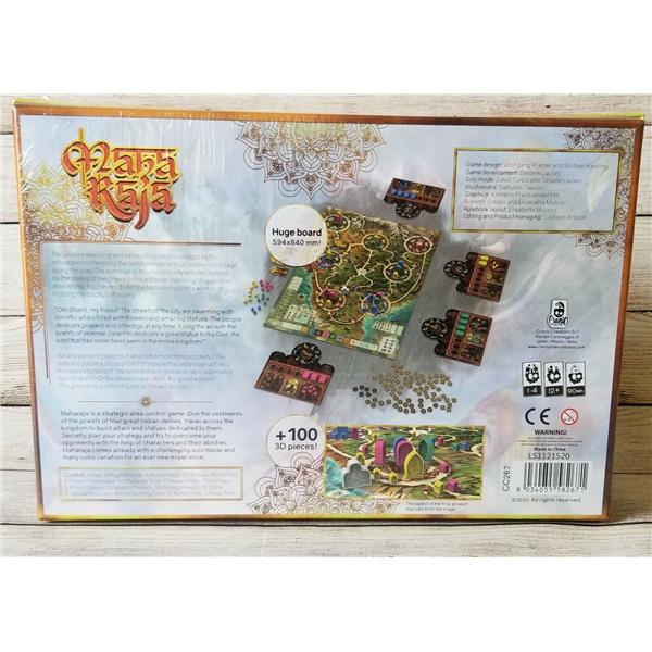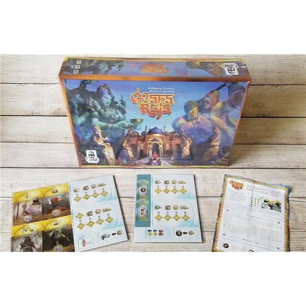 Maharaja is a new edition of the classic game by the authors Wolfgang Kramer and Michael Kiesling. In this new version of the game which supports 1 to 4 players and is enriched with new graphics and components, you build statues of your God of reference to please the Maharaja during their visit and score victory points at the end of the game depending on the majority you reach.