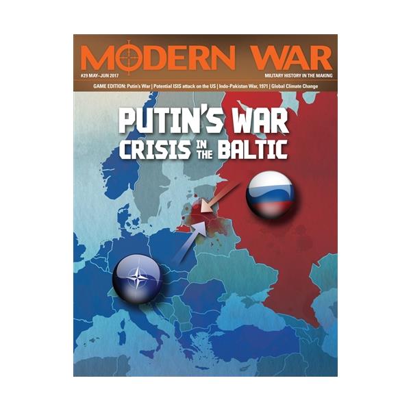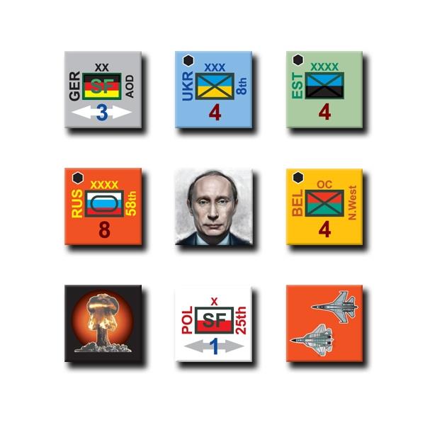 Putin’s War: Reclaiming the Soviet Empire in Eastern Europe is a strategic-level, two-player wargame of low-intermediate complexity that covers the campaign that could occur if the Russian dictator decides to give up his strategy of incremental “opaque” warfare and instead simply try for a big win. The game’s sub-systems are crafted to present a supreme-commander’s-eye-view of such a war. It’s therefore almost fully strategic in its perspective, with only the most pastel of operational and tactical undertones added to enhance its tone and texture in those regards. Putin’s War takes two experienced players only about two hours to complete, and it’s adaptable for solitaire play.