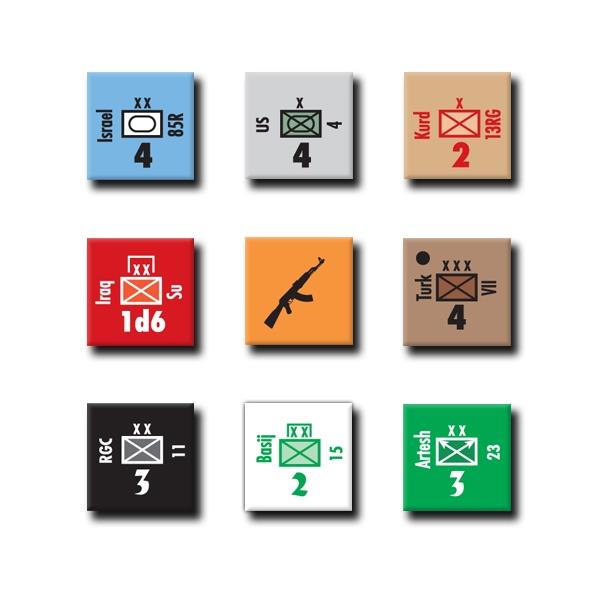 ISIS War. This game is set in a timeframe of the near future – 2017 through 2020 – in which the Iranians may have developed some kind of military nuclear capability. Even so, with the US likely still in another post-Vietnam-funk-type of “neo-isolationism,” the possibility for a blitz-style conventional Iranian victory across the region – aimed at fully establishing and certifying Tehran as the unchallengeable hegemon of the Gulf region – moves to the fore. The game’s scenario can also be taken as a model of a possible Iranian reply to a US and/or Israeli precision aerial campaign targeted against their nuclear development facilities. Furthermore, though entirely playable on its own, Isis War can also be played as an expansion and update of my earlier design, Oil War: Iran Strikes (Modern War #2).