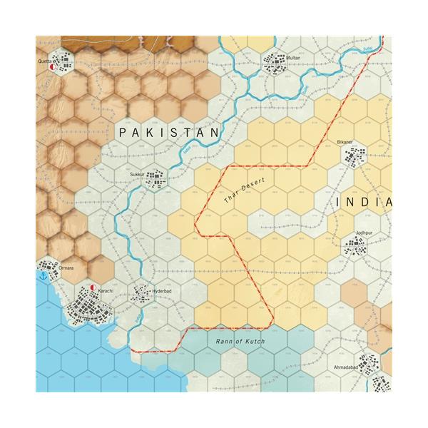 Cold Start: The Next India-Pakistan War (CS) is a strategic-level, two-player wargame of low-intermediate complexity that covers the campaign that could occur if the Indians decide to try for the big win over long-time opponent Pakistan. The title comes from the fact “Cold Start” is the phrase used by the Indian military to describe their officially declared policy of eschewing the first use of nuclear weapons in any future war with Pakistan. The game’s sub-systems are crafted to present a supreme-commander’s-eye-view of such a war. It’s therefore almost fully strategic in its perspective, with only the most pastel of operational and tactical undertones added to enhance its tone and texture in those regards. CS takes two experienced players only about two hours to complete, and it’s adaptable for solitaire play.