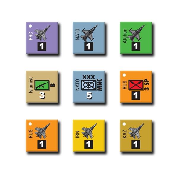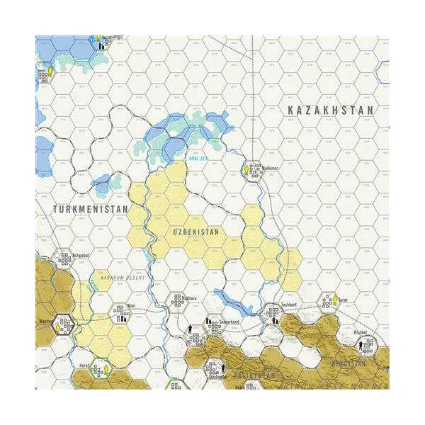The game system models the situation at the highest strategic level. Using a variation of Ty Bomba's Putin's War (MW #29). Units represent operational task forces of corps size; Special Forces; airpower, and cyberwar. The game system models operations in a vast theater with limited infrastructure and with coalition forces that all have divergent political aims.