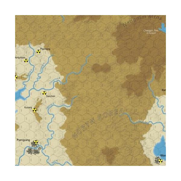 The game includes one map of North Korea, from shore to shore (as well as the northern region of South Korea), and two counter sheets (560 counters) of game pieces representing all of the contemporary US, Allied (South Korean) and North Korean forces that would be engaged in a US preemptory conflict in the near future.