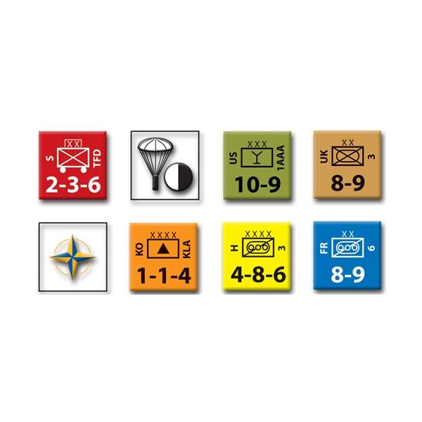 Each hexagon equals 7.5 miles (12 km .) from side to opposite side. Each game turn represents two days. The units of maneuver a re mostly brigades and divisions-size groupings for the Serbia ns; each with about 2,000 to 5,000 men, and about 25 to 50 armored fighting vehicles in the tracked mechanized units. On the NATO side, units are divisions, corps and armies, each containing about 9,000 to 25,000 men and up to 350 or so armored fighting vehicles. The invaders' a ir supremacy is built into several aspects of the rules (such as the CRT) and therefore is not represented by separate aircraft unit-counters.