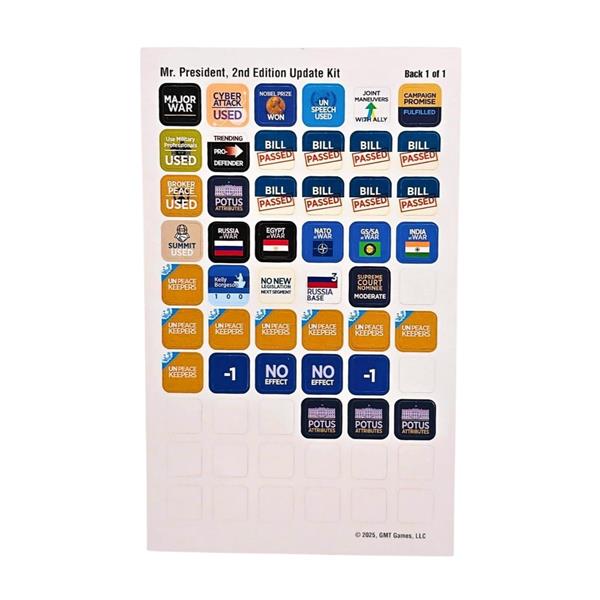 The Mr. President 2nd Edition Update Kit will include the following items: