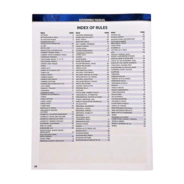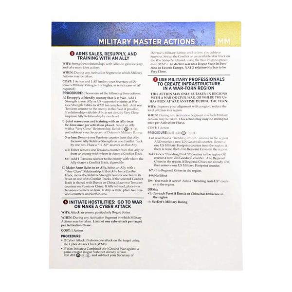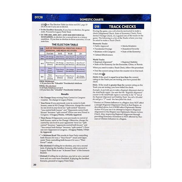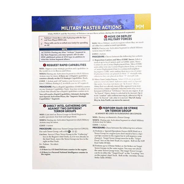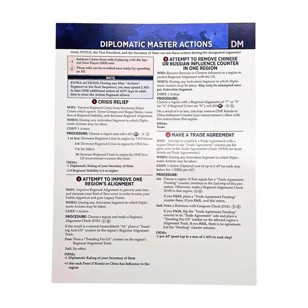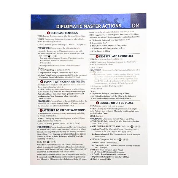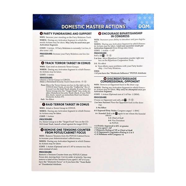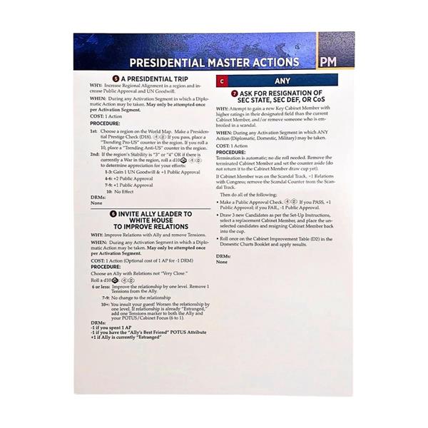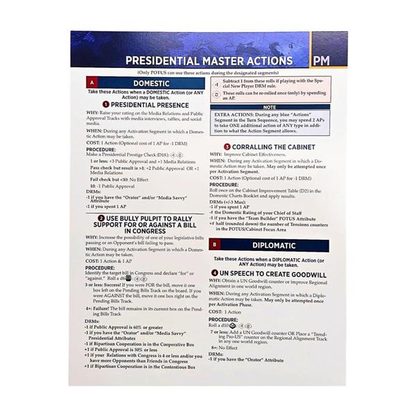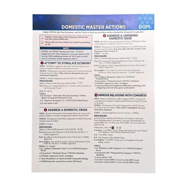 - 4 double-sided Action Cards (Domestic, Diplomatic, Military, Presidential)