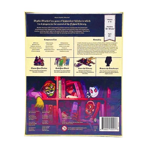 In Mythic Mischief, you play as a faction of Mythic Manor students competing to get as many of the other students caught by the Tomekeeper as you can without getting caught yourself.