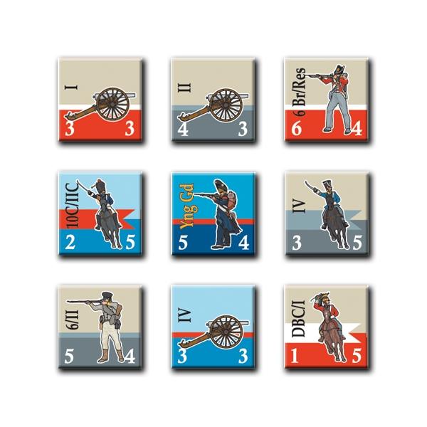 The game includes all the units present at the battle – French, British and the Prussian – as well as extra units representing other nearby forces that arrived too late to participate historically. Not all pieces are the same; some are more powerful than others, and different types (like cannon) have different capabilities.