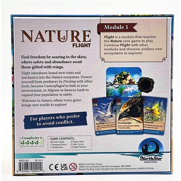 This module adds a separate deck to the base game, 'nest' components, new flight traits, a fifth round to gameplay, and The Faraway Place where species can now migrate.