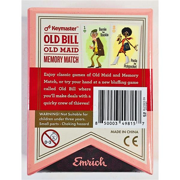 Build a den of thieves with matching pairs, but avoid Old Bill by outwitting and outwitting the other Masterminds! The player who gets the most matching pairs of thieves (two cards with the same picture) wins the game, but watch out for Old Bill! If you end up with him in your hand, he will remove one of your matches!