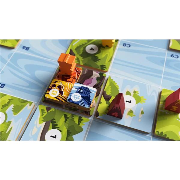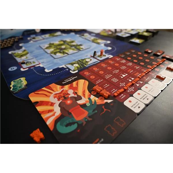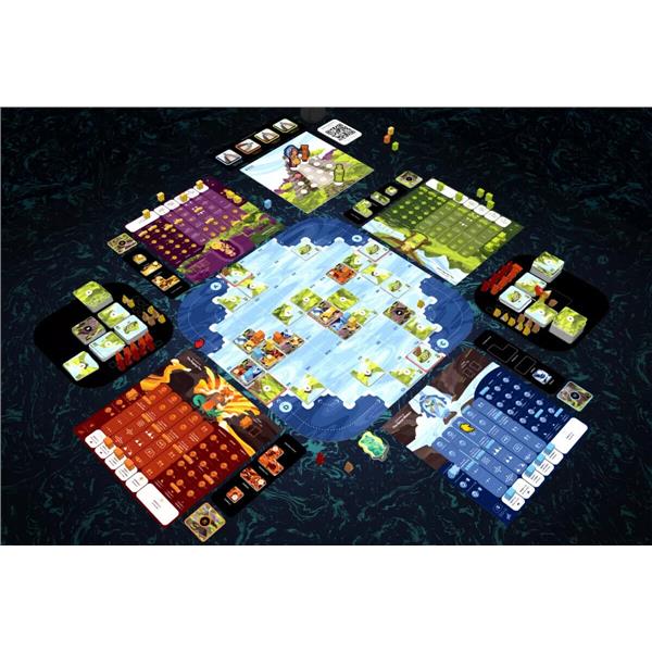 At the core of Oros is the unique ability to shift, move, build up, erupt, and reposition the land within an infinitely connected play environment. This mechanic turns every action into a puzzle of creative problem solving, abstract thinking, and a constantly evolving strategy. Another chief aspect of the game is the player mat which uses a minimal worker placement mechanic to govern action opportunity. The mat also maintains an action economy that evolves differently for each player as they invest their gained wisdom into a variety of action improvements. Because of these core aspects, there are dozens of strategies for players to explore, and every game plays out in a different, yet competitive way.