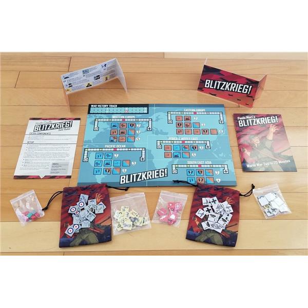 In Blitzkrieg! two players acting respectively as the Allied and Axis coalitions during World War II battle for control of the main theatres of the conflict in a challenging game with simple rules, a short playing time and many tough decisions!