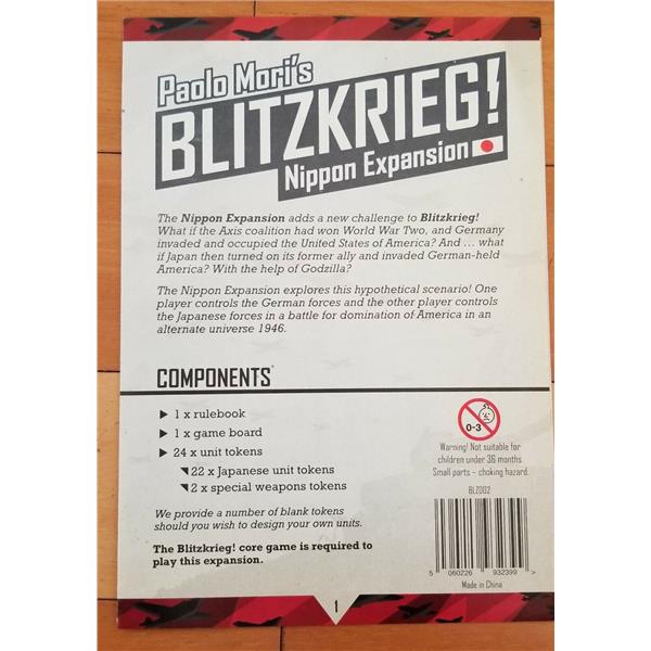 This listing is for a New, Sealed copy Paolo Mori's Nippon Expansion for the new game Blitzkrieg!. The Blitzkrieg! core game is required to play this expansion