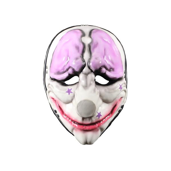 Houston is one of the four playable characters in Payday and took on the mantle of Hoxton, assuming his alias and mask. Now it's your turn to feel like a real bank robber with this high quality vinyl face mask. It shows his pink and white clown mask with pink stars and features a backstrip for tight fit, so you won't lose it on your next heist. The masks are hand-painted and have a slight "used" look to them that adds to their authenticity.