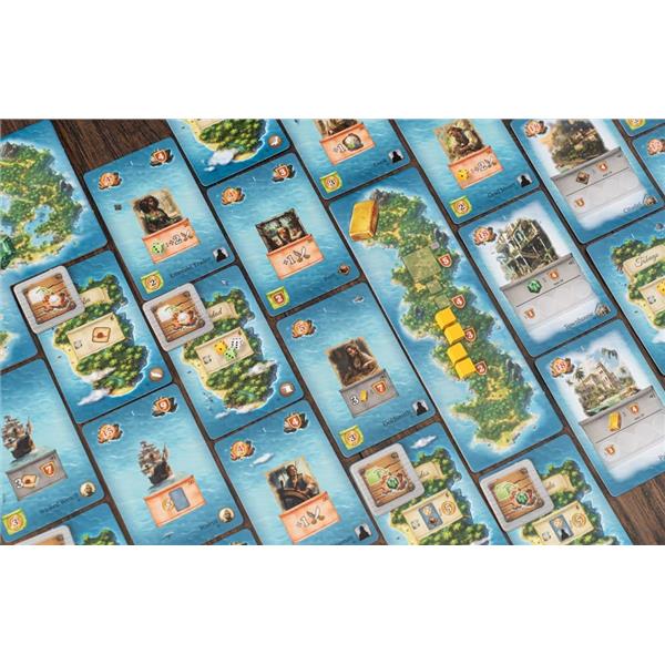 This Set sail for an adventurous raid...for perhaps it will be your last! Face danger and adventure once more while you search high and low for the most valuable treasures the Caribbean has to offer, then quickly find a safe harbor to stash priceless gold, rare emeralds, and iridescent pearls. Explore, stockpile cargo, hire crew, and commandeer rival ships, but don't forget to bury your loot. As you sail, be on the lookout for a place to settle after your life on the high seas has come to an end, but before you do that, you must outpace your opponents as one trip around the Caribbean won't be enough. You must make three trips in order to retire as the richest and greatest buccaneer of all time.