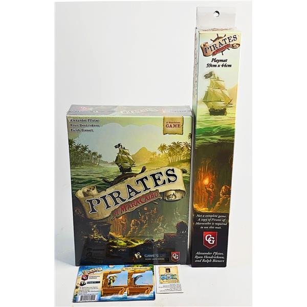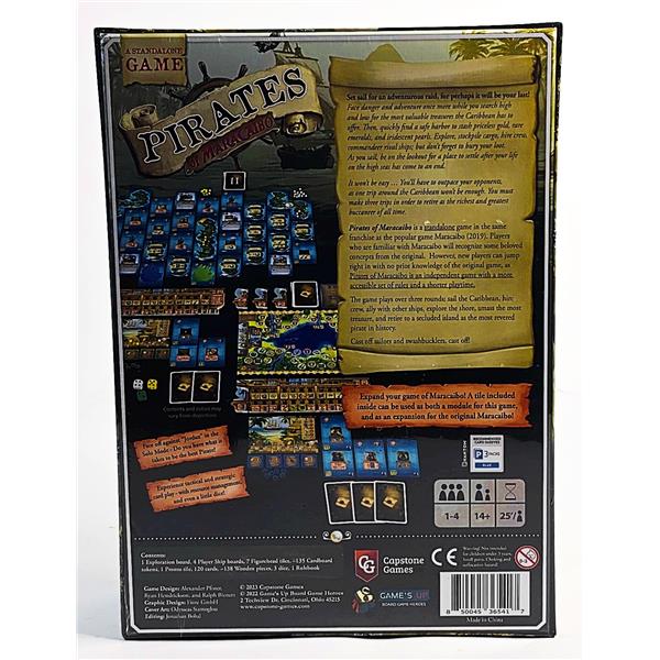 Pirates of Maracaibo is a standalone game in the same franchise as 2019's Maracaibo, and players who are familiar with that game will recognize some beloved concepts from the original. However, new players can jump right in with no prior knowledge of the original game as Pirates of Maracaibo is an independent game with a more accessible rule set. The game plays over three rounds in which you sail the Caribbean, hire crew, ally with other ships, explore the shore, amass the most treasure, and (ideally) retire to a secluded island as the most revered pirate in history. Cast off sailors and swashbucklers, cast off!