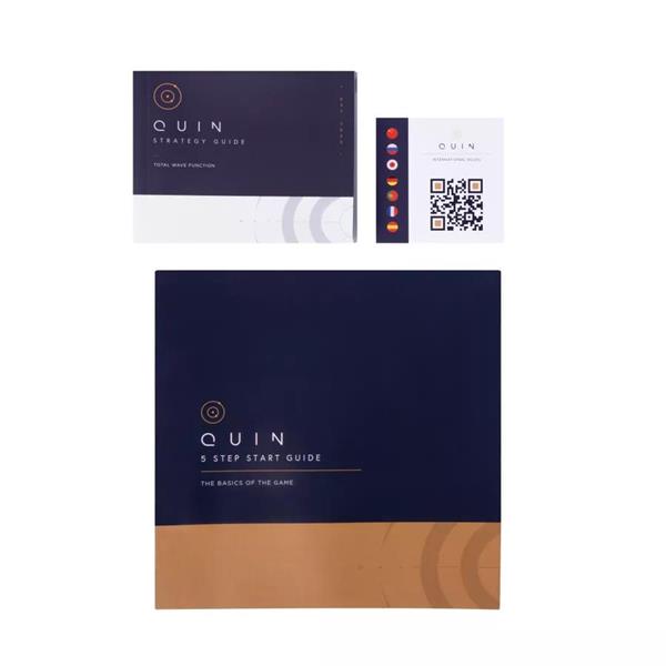 Quin is an abstract tabletop strategy game, taking place in a sci-fi quantum realm. Players control a variety of quark particles, 17 on each side, made of 9 types, each with distinct speed, powers and capture abilities. The goal of Quin is to reach First Sight, Center, with your Light, or to capture your opponent's Light.