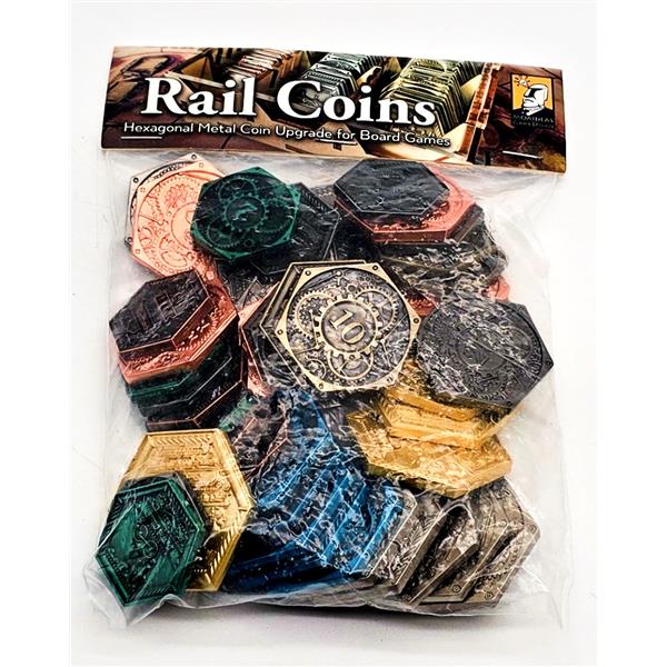 Rail Coins are the first hexagonal metal coins specifically designed for upgrading your board game experience. Each coin also features a detailed engraving of a historic locomotive from the past. Wooden Treasure Chests of 3 different sizes that can double as coin trays are also available!