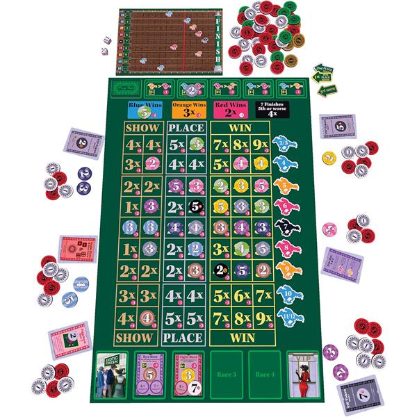 In Ready Set Bet, you and your friends head to the races for a day of cheering, jeering, and betting on your favorite horses, whose fates hang on every roll of the dice.