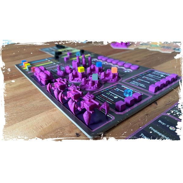 The goal of the game is to spread at least 5 of your influence tokens among the other players. When the game is over, if only one player has been able to accomplish that, they are declared the winner. In the event that two or more players have achieved that, the player that has given away more influence tokens wins the game.