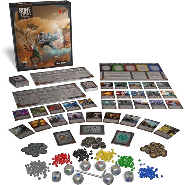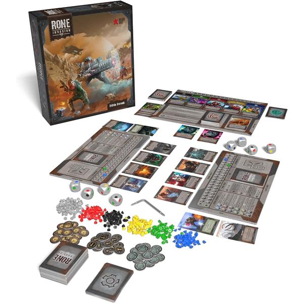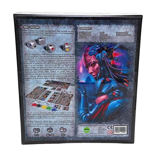 RONE: Invasion is a strategic post-apocalyptic deck and dice building game for 1 or 2 players (expandable to 1 to 4) and features unique dice that can be customized during the game.