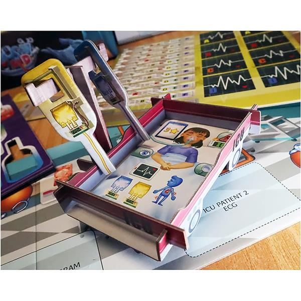 Rush M.D. – ICU is an expansion to the real-time, cooperative, worker placement game Rush M.D. It introduces the Intensive Care Unit (ICU) board, where you will be required to perform electrocardiograms (ECGs), defibrillation and administer pump infusion drugs quickly and efficiently to save lives of very ill patients! It also adds a new Medical Examinations board with 4 new thematic, dexterity mini-games to offer more choices for your game. In Rush M.D. you will also find brand new ICU patients as well as new Hospitalized patients, new objectives, and more!