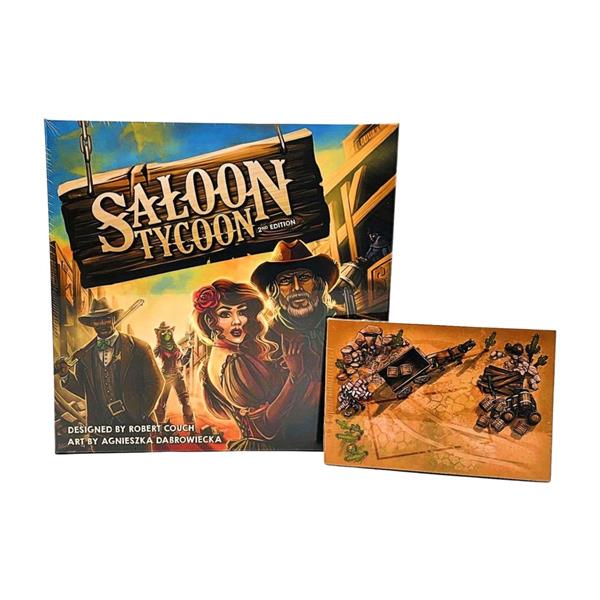 This is a building and tile placement game where the purpose of the game is to build the best saloon. The game is played by each player taking a board and then taking turns going clockwise from the first player earning gold, taking an action, building and collecting bonuses.
