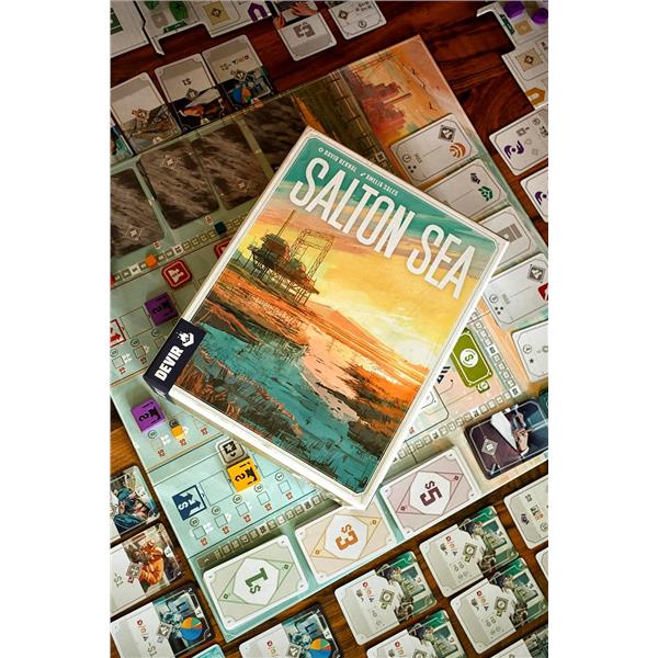 Designed by David Bernal and illustrated by Amelia Sales, Salton Sea can be enjoyed alone or in groups of up to four players in sessions lasting about 120 minutes. During the game, players must manage their geothermal lithium extraction companies to obtain the greatest number of points. The extraction of this material and its subsequent processing will be the driving force of your companies.