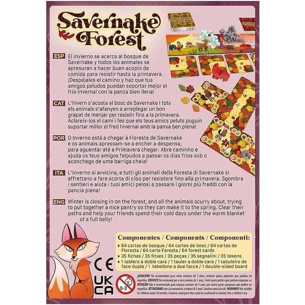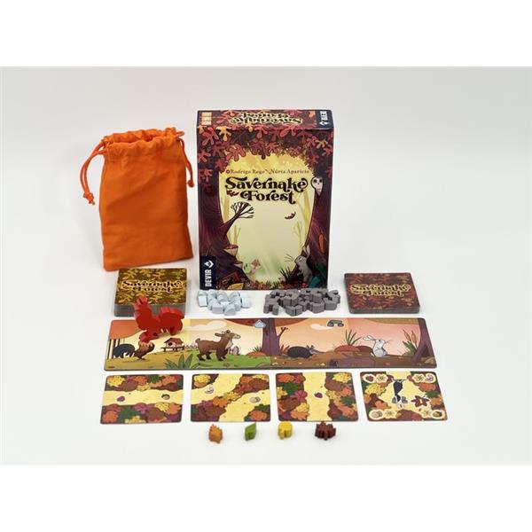 Foxes, hedgehogs, beavers, owls, rabbits, woodpeckers, wild cats... Up to 23 different types of animals live together in the Savernake Forest. At the end of autumn, they all prepare to spend the cold winter with enough provisions and here you are to give them a hand… Or a paw! To play Savernake Forest you have two decks of square cards, one showing the animals and the other with forest paths full of succulent food. Each player is randomly given an animal card, showing how many foods they can store and their preferences. For example, the fox loves eggs, but not berries or nuts. To get the best score, you must try to get each animal to collect its favorite foods.