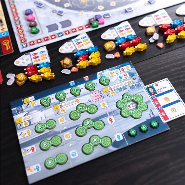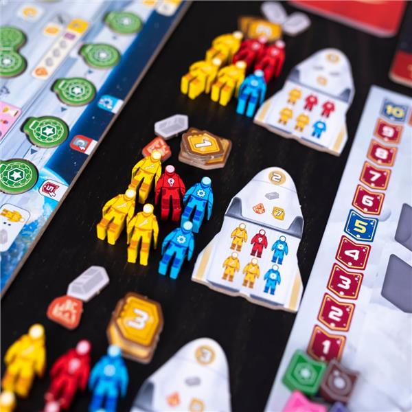 Shuttle phase: Each player drafts a shuttle tile from an open display to determine which type of astronauts and resources they can use that round, as well as the turn order for the next phase.