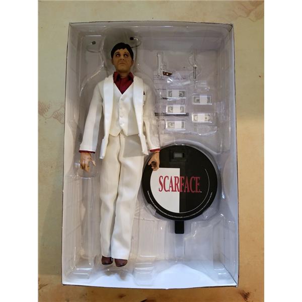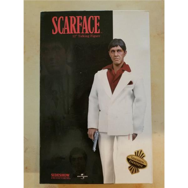 This is a listing for a rare Scarface Talking Figure using explicit language and dropping plenty f-bombs. The figure has been displayed but is in excellent working condition. Box has some minimal shelf wear. See pictures.