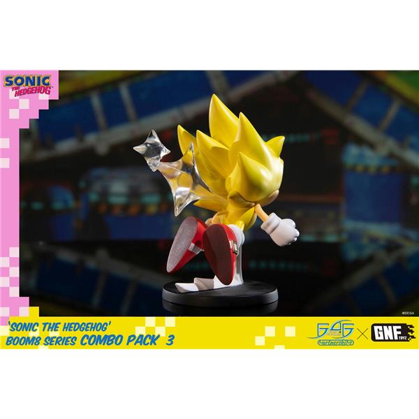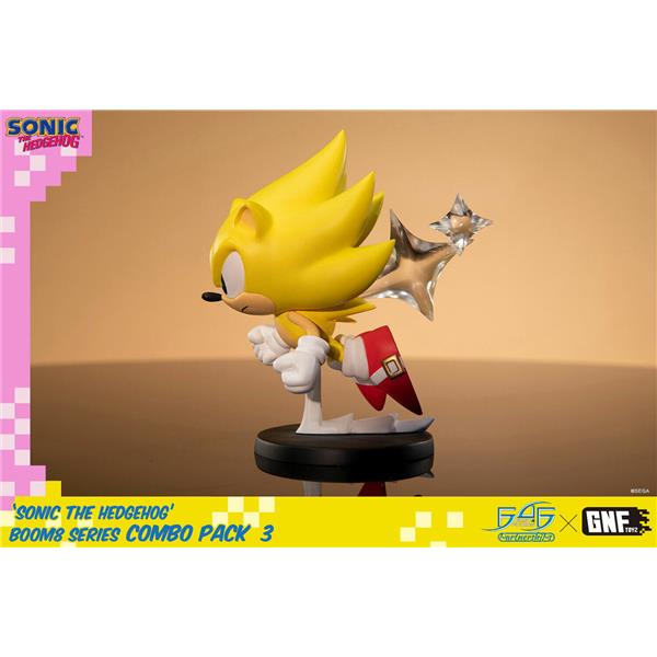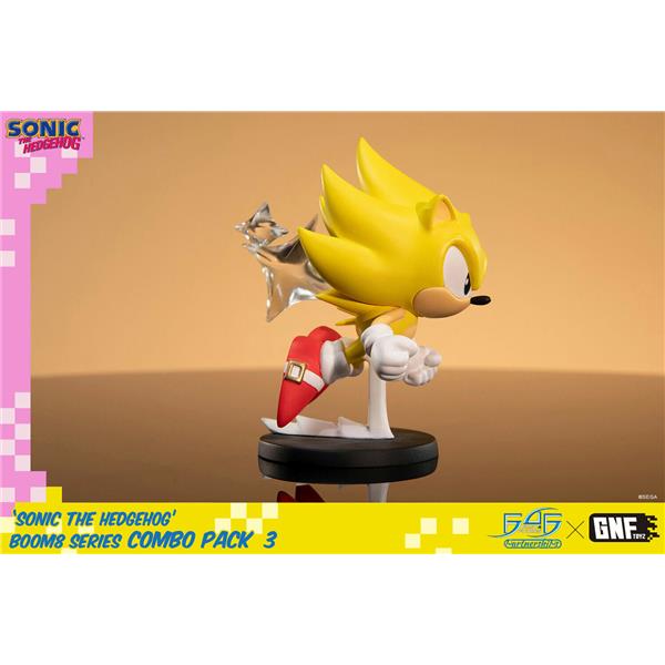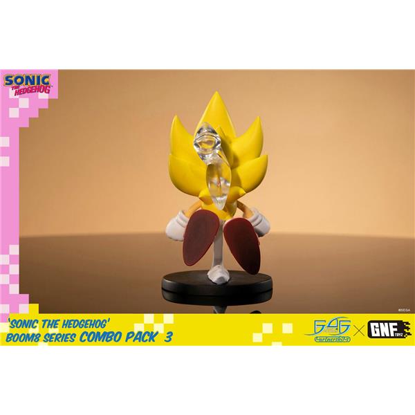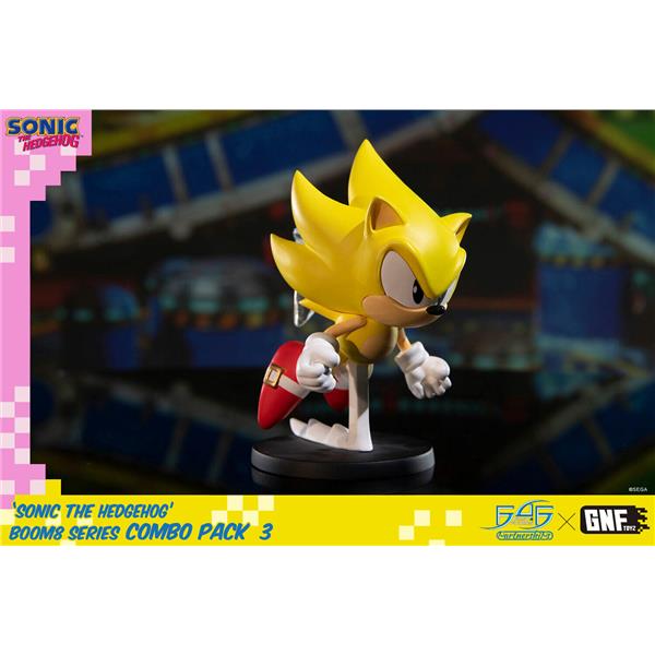 - Boom8 Vol 6 - Super Sonic in a dashing pose attached to a round black base.