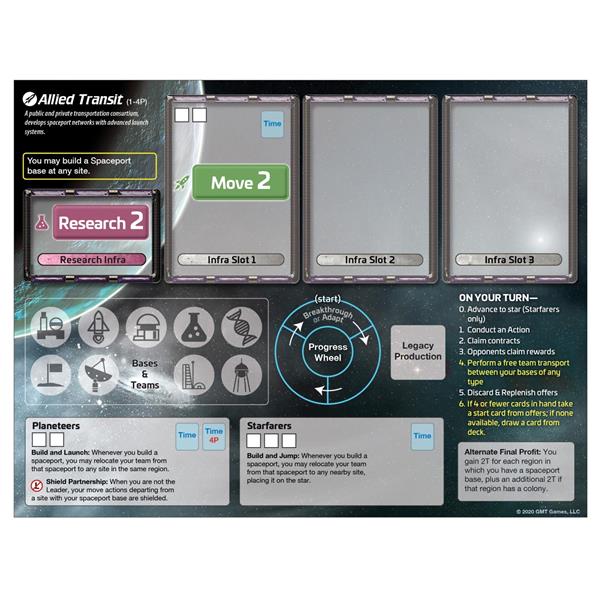 Ten of the fourteen HQ mats can be flipped over to play the SpaceCorp solitaire game with an enhanced HQ against the competition AI.